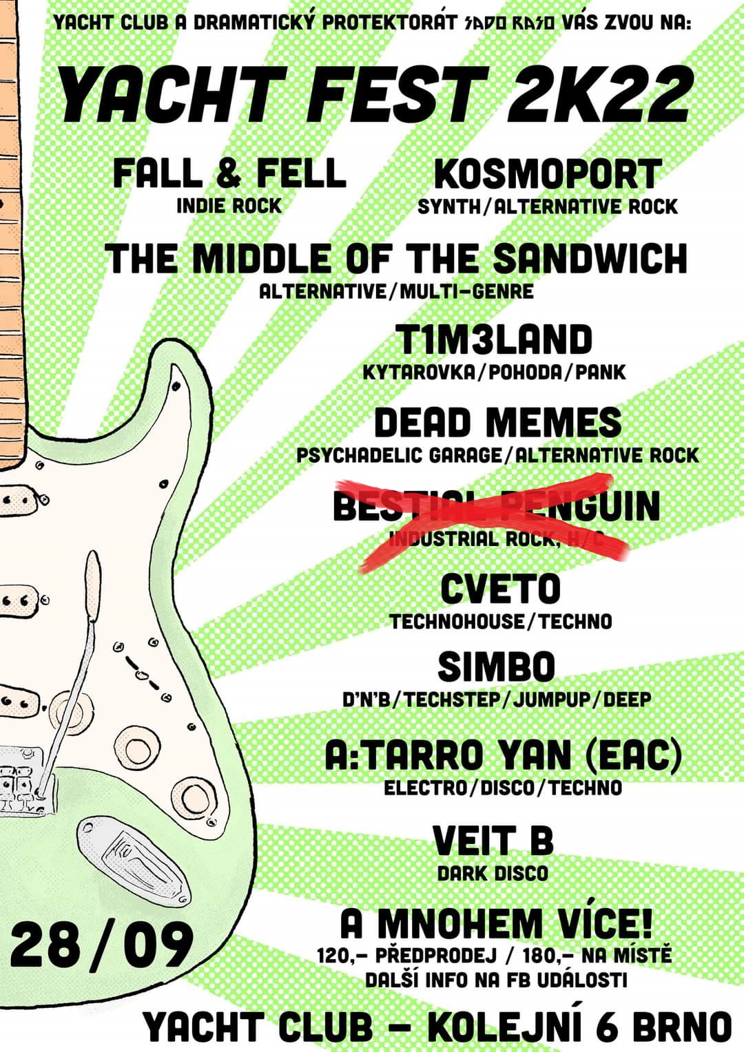 26.09.22 Omlouváme se, ale kvůli onemocnění půlky kapely nemůžeme na Yacht Festu hrát. Snad příště.
